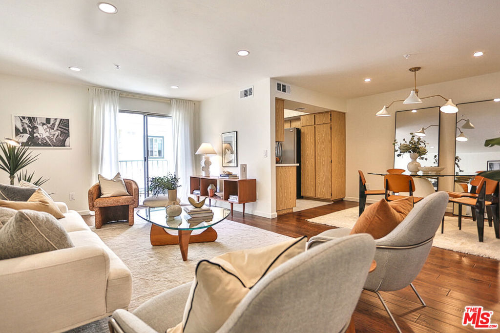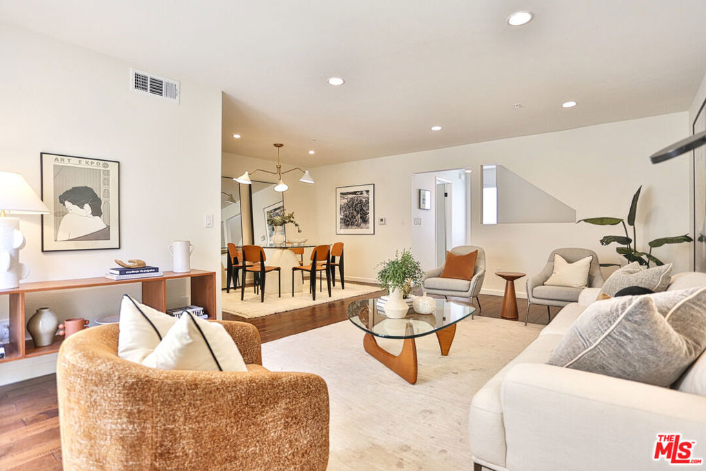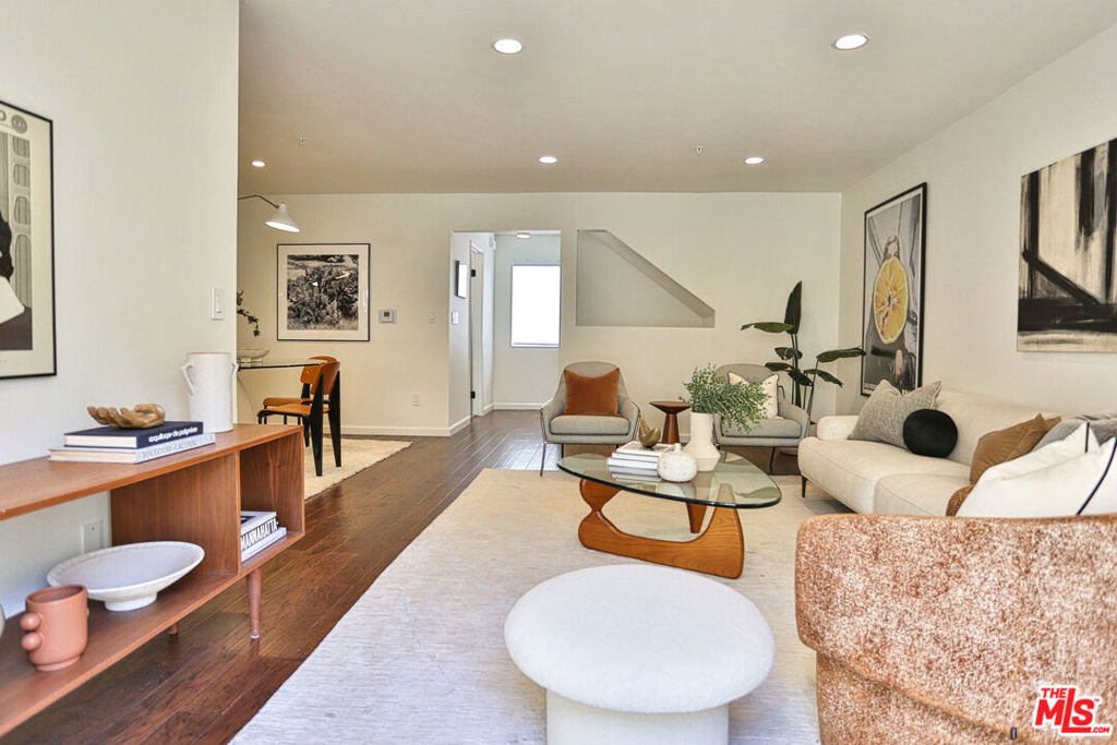Located in Glendale's Rancho Riverside neighborhood is this REFRESHED bright and airy tri-level Townhome. Direct access from your private two-car garage, welcomes you to a proper entryway with stunning honed limestone tile and coat closet. A short flight of stairs, clad in engineered hardwood floors, leads you to the main level with a private balcony. The refreshed kitchen has an Ideal U-shaped layout with newly installed quartz countertops, hexagon tile flooring and ceramic tile backsplash complimentary of the light-oak wood-like cabinets. The main living area, with engineered hardwood floors, is accompanied by a freshly updated powder room as well. As you make your way upstairs, enjoy views of the Verdugo Mountains. Enter the primary suite, with vaulted ceilings, updated vanity and closet area leading to the large floor-to-ceiling tiled shower. The second upstairs bedroom, also with vaulted ceilings, is adjacent to its own guest-bath with charming penny-tile flooring. All within a quaint twelve-unit Townhome community. Convenient to recreation, freeways, Griffith Park, the Equestrian Center, Studios, and everything Glendale, Burbank and North East Los Angeles has to offer.