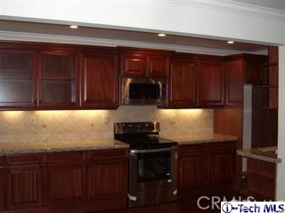 Exquisitely and tastefully remodeled 1st floor unit. Completely remodeled and updated with top of the line granite counters, wood flooring, kitchen and bathroom tiles. Kitchen has been equipped with high quality custom-made cabinets and stainless steel appliances. Dimming lights everywhere with plenty of recessed lighting fixtures make this unit as bright as you need or dim the lights for a relaxing atmosphere with the fireplace at the living room. Additionally, the unit features a fully updated bathroom with custom tiling and a large inviting outside patio for relaxation. No detail has been overlooked. Ready to move in to this lovely unit situated at much sought after NorthWest Glendale above Glenoaks on a much desired street. Great Property. Wonderful Location. You and your clients will love this luxury in a small package.