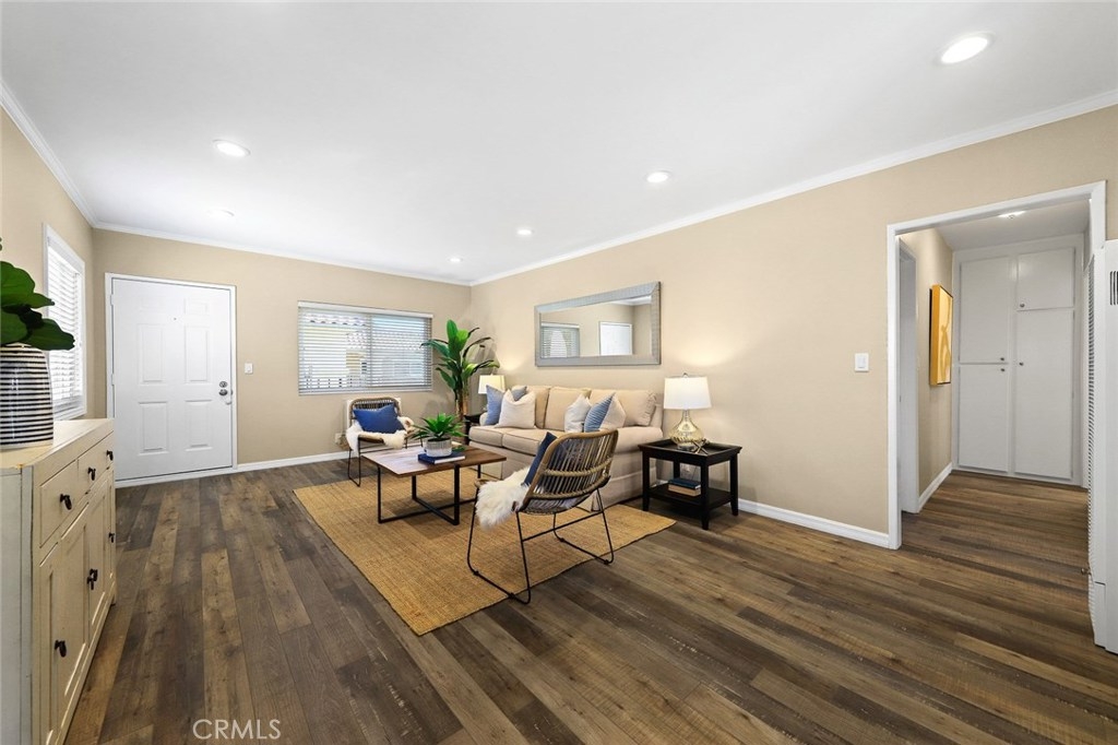 Best buy in Los Angeles. This charming top floor Crescenta Villa condominium has been recently and thoughtfully remodeled with an impression of quality and convenience. Enter in the front door and enjoy the open and inviting living room that leads you back to the dining area with chandelier and dual pane windows that draw in an abundance of natural sunlight and takes in the beautiful views of the Verdugo Hills. Take delight in the California landscape from your balcony when entertaining family and friends or while having some precious down time sipping a warm cup of coffee or tea. The kitchen provides plentiful cabinet space, stainless appliances, brushed chrome hardware, and quartz stone countertops. The bedroom has that walk-in closet you’ve been looking for as well as a second closet. The updated bathroom has a granite countertop with dual sinks and frameless glass shower with tub. You will further appreciate the well thought out finishes and amenities including recessed lighting, crown molding, new two-inch blinds, new floors, new air conditioning, two side-by-side parking spaces, great quantities of storage, community pool and spa, and easy access to the building elevator. Close proximity to shops and restaurants in Old Town Montrose, Trader Joes, La Crescenta schools, and just a straight shot down the 2 Freeway to DTLA.