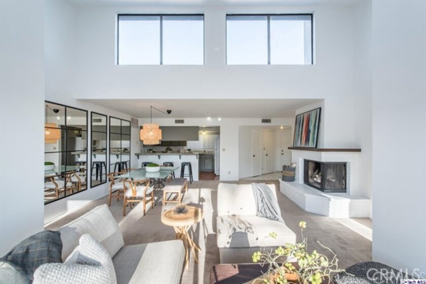 Conveniently located on a quiet street near shopping, restaurants and just a few blocks from the Americana and Glendale Galleria. This lovely condo has 2 bedrooms, including a master with walk-in closet and 2 full baths. It is on the top floor of a very desirable building. The kitchen, dining and living room open concept layout with high ceilings is perfect for entertaining. The living area fireplace gives the unit a sophisticated high rise New York feel. There is a charming balcony with access from both bedrooms and living room. There is separate in-unit laundry room. The underground gated garage has a small storage space and 2 side by side parking spots. There is also a small storage room adjacent to the unit.