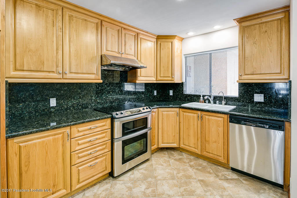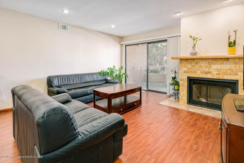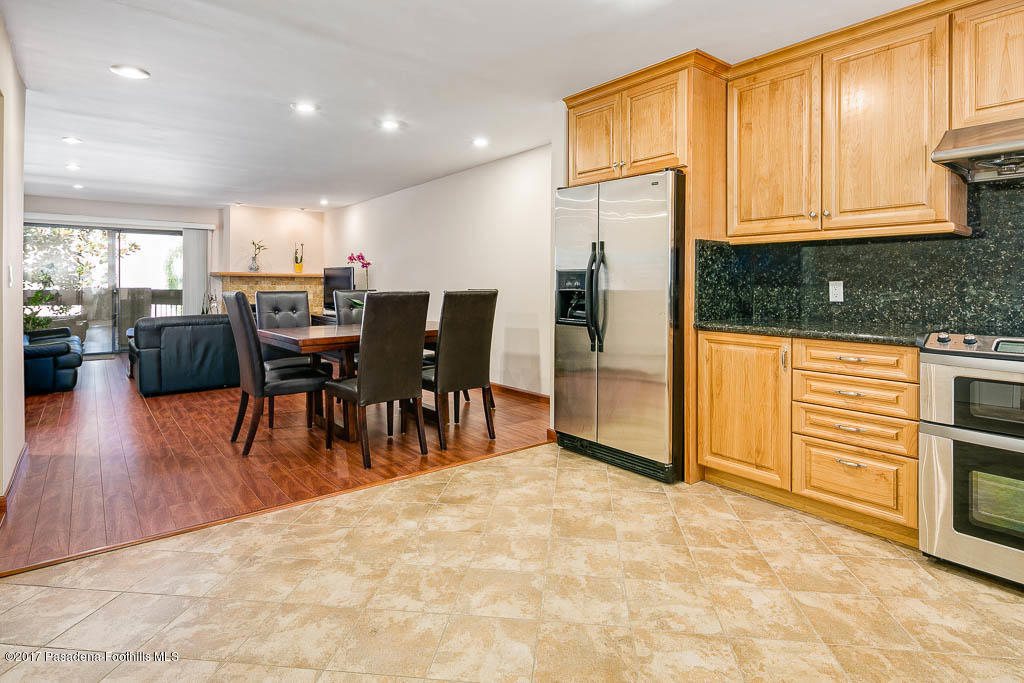 Quiet comfort awaits with this completely redone condo unit situated in the desirable Verdugo Viejo area, north of the freeway and Glenoaks Blvd. The open floorplan includes a roomy gourmet kitchen, a dining area with recessed lights overhead and the living room area with attractive stone tile gas fireplace. Through sliding glass doors is a comfortable balcony to enjoy a glass of wine while gazing at the Glendale Hills. The spacious master bedroom has an office area and recessed lights overhead, walk-in closet and full bathroom. Theres 2 side by side parking spaces plus extra storage cabinets in the subterranean parking area. Coming home is simple, and what a wonderful home it is!Quiet comfort awaits with this gleaming condo unit situated in the desirable Verdugo Viejo area, north of the freeway and Glenoaks Blvd. This spiffy unit was completely redone in 2010 and it shows. The open floorplan includes a roomy kitchen with ceramic tile floors, custom wood cabinetry, stainless steel Sharp range/microwave with hood vent and Kenmore dishwasher, a double porcelain sink and Black Galaxy granite countertops. Proceed into the dining area which comfortably seats eight with recessed lights overhead, then the living room area with attractive stone tile gas fireplace, both have cherry stained laminate flooring. Through sliding glass doors is a comfortable balcony to enjoy a glass of wine shaded by a mature tree and offering unobstructed views north of the Glendale hills. Off the hallway is a good-sized bedroom with mirrored sliding doors opening to the closet, a laundry closet with side by side washer/dryer and cabinets overhead, a 3/4 bathroom with tile floor, granite counter, sliding glass door shower and the spacious master bedroom with office area and recessed lights overhead, walk-in closet, full bathroom with shower over tub, tile floor, framed mirror, and granite counter sink. There is light in abundance in this unit. The 3-story complex has an elevator and attractive co