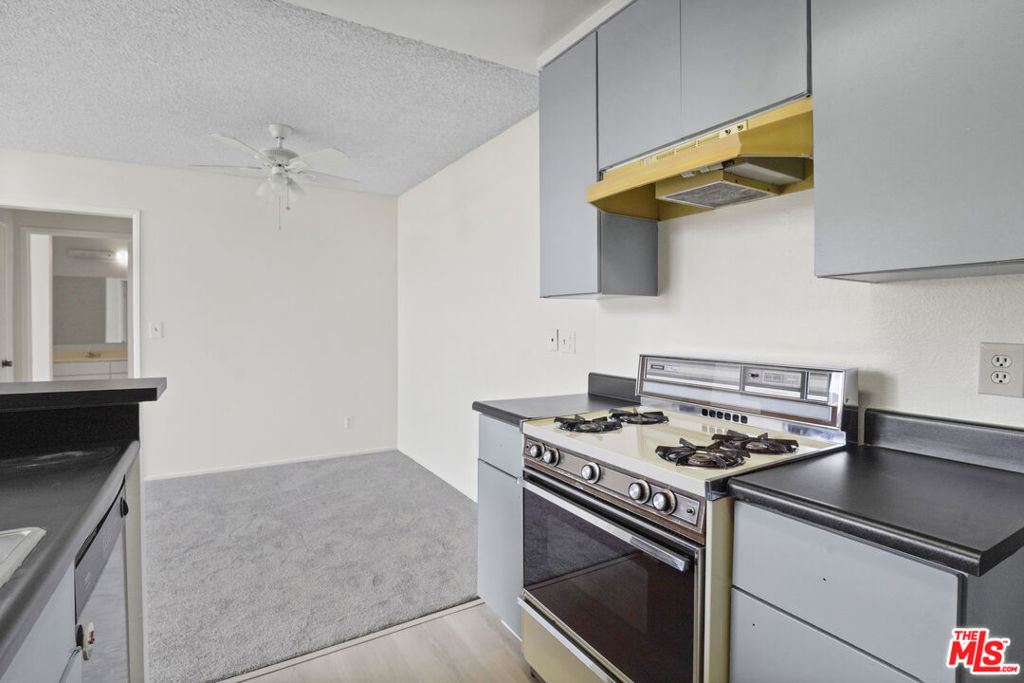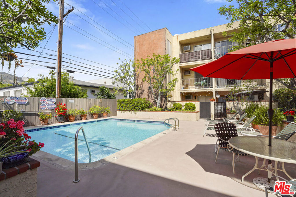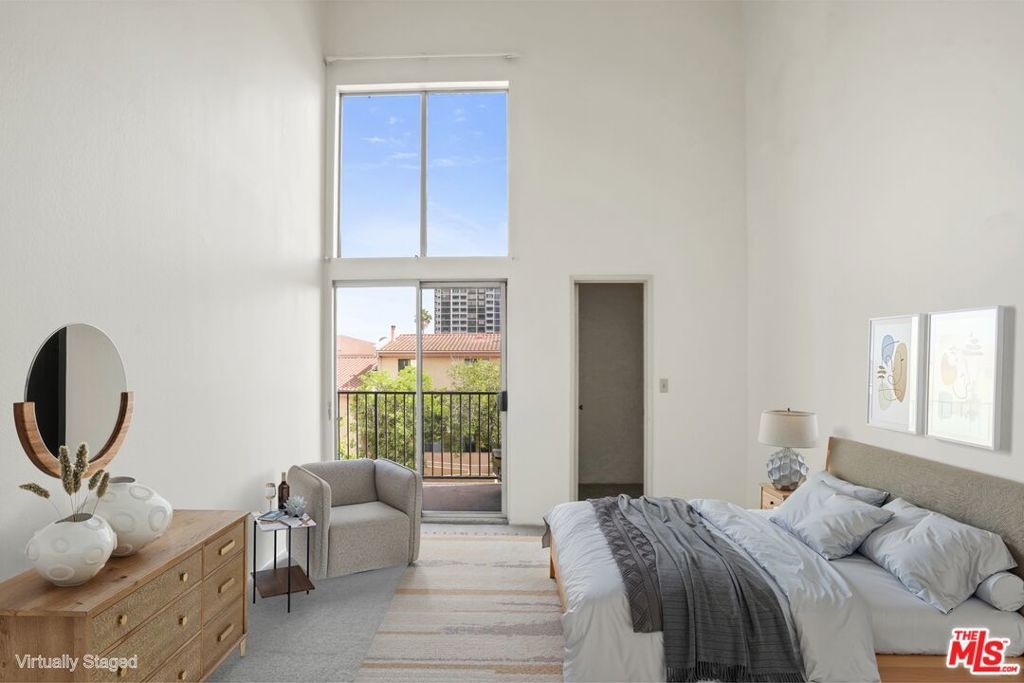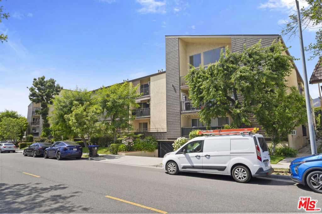 Tucked into the top corner of a well-kept Glendale complex, this 2-bedroom, 2-bath condo offers a rare mix of privacy, natural light, and architectural charm. With only one shared wall and vaulted ceilings throughout, it feels like a quiet retreat above the city.Inside, sunlight fills the space through soaring windows, a feature only found on the top floor. A wall of tall glass doors opens to a large private balcony with skyline views. There's plenty of space out there for outdoor dining, lounging, or even your own container garden. The home has been freshly painted and features new carpet and laminate flooring. The layout flows easily from the living room to the dining area and into a kitchen with generous cabinet storage and a classic feel. The first of two bedrooms mirrors the living room's brightness, with tall ceilings, large glass doors, and its own direct access to the balcony. Both bedrooms offer good closet space and comfortable proportions. The complex features a pool, spa, BBQ area, clubhouse with a fireplace, and a large laundry room. Two side-by-side parking spaces and a private storage unit are also included. This is currently the least expensive 2-bedroom condo in Glendale. It's a top-floor, corner unit filled with light, privacy, and potential in one of the most convenient spots in town.