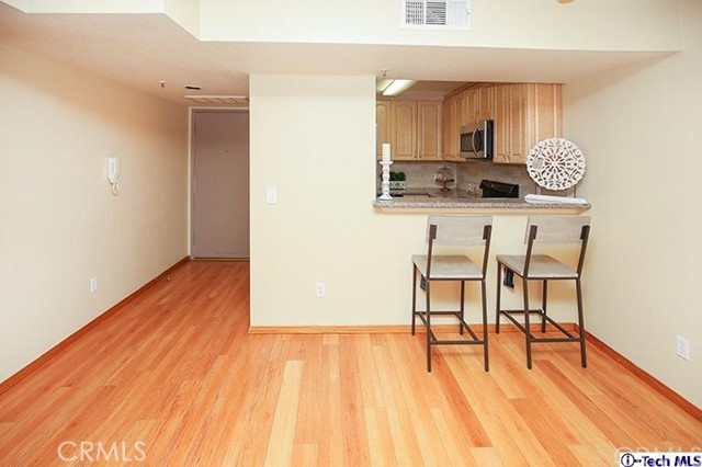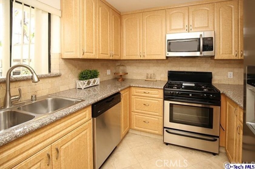 Wonderful 2 bedroom 2 bath 1st floor condo, in a cozy 6 unit building. As you enter, there is a spacious combination living and dining room with recently installed laminate flooring. There are three sliding doors that lead to an outside walkway with beautiful new landscaping. The interior was just painted, plus the kitchen and bathrooms have been upgraded with elegant granite countertops. The private stackable laundry unit is conveniently located between the two bedrooms. This property also offers two secure underground parking spaces, as well as a locked private storage room. The Exterior of the building was painted in February for a lovely fresh look. The building is conveniently located in a desirable Glendale neighborhood, very close to the Glendale Galleria & The Americana, as well as very accessible to shops, restaurants & transportation.