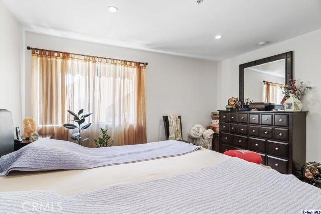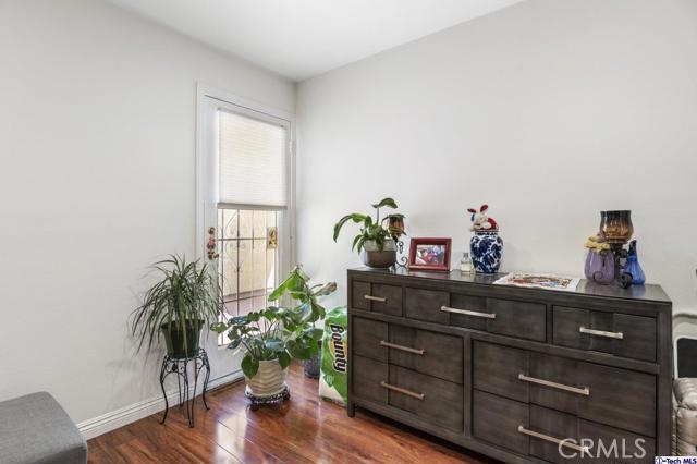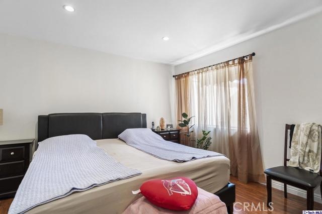 A wonderful Glendale condo to call home! Set within a secured complex, this spacious 1,210-sqft first floor condo is a well-sized home filled with undiluted light from the variety of windows plus recessed lighting throughout and highlights the chestnut tone flooring. The common area of the living room and dining room enjoy access to the front patio space and creates a cohesive flow for entertaining or enjoying a relaxed evening in. Complete with all white cabinetry and spacious countertops compliment by a tile backsplash, this user-friendly kitchen has an ideal layout to aid with all culinary creations to ignite and to be enjoyed in the adjacent dining room. Each bedroom includes built-in closets fitted with mirrored doors and the two secondary rooms include side patio access. The Primary bedroom includes two closets and an attached private bathroom. As a great plus, this home features an in-unit laundry room for ease of access. Poised in the heart of Downtown Glendale, this lovely home is moments away from local establishments, markets, shops, restaurants, easy freeway access, and so much more!