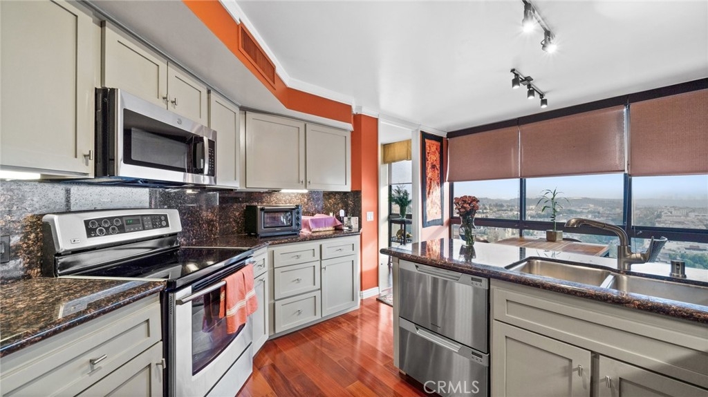 Luxurious High Rise Building in the Heart of Glendale. Stunning Panoramic Views of Downtown Los Angeles with Floor to Ceiling Windows. Spacious Primary Suite with a large ensuite bathroom. The second bedroom also has a full ensuite bathroom. There is a private balcony off of the living room. Well Maintained common areas with 24 hour security guard. Heated pool and spa, gym, men and women's sauna and changing rooms. Social Room for events and parties along with guest parking. Close to Traders Joes, minutes away from the Americana and restaurants. Easy Freeway access.
