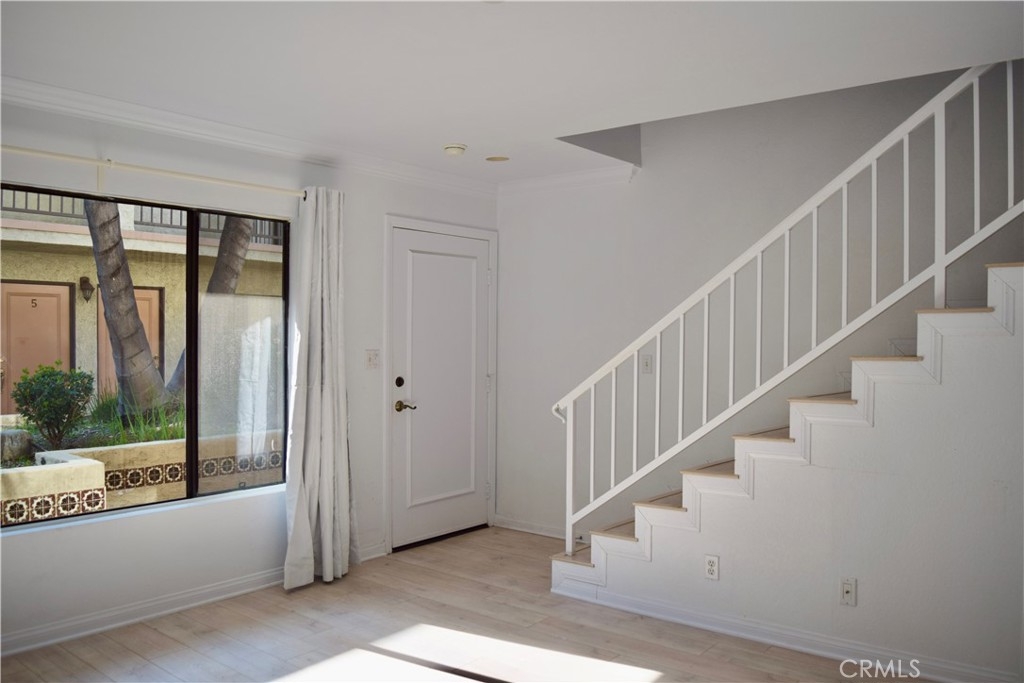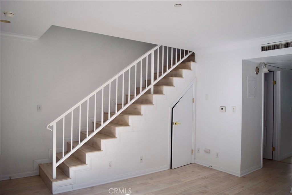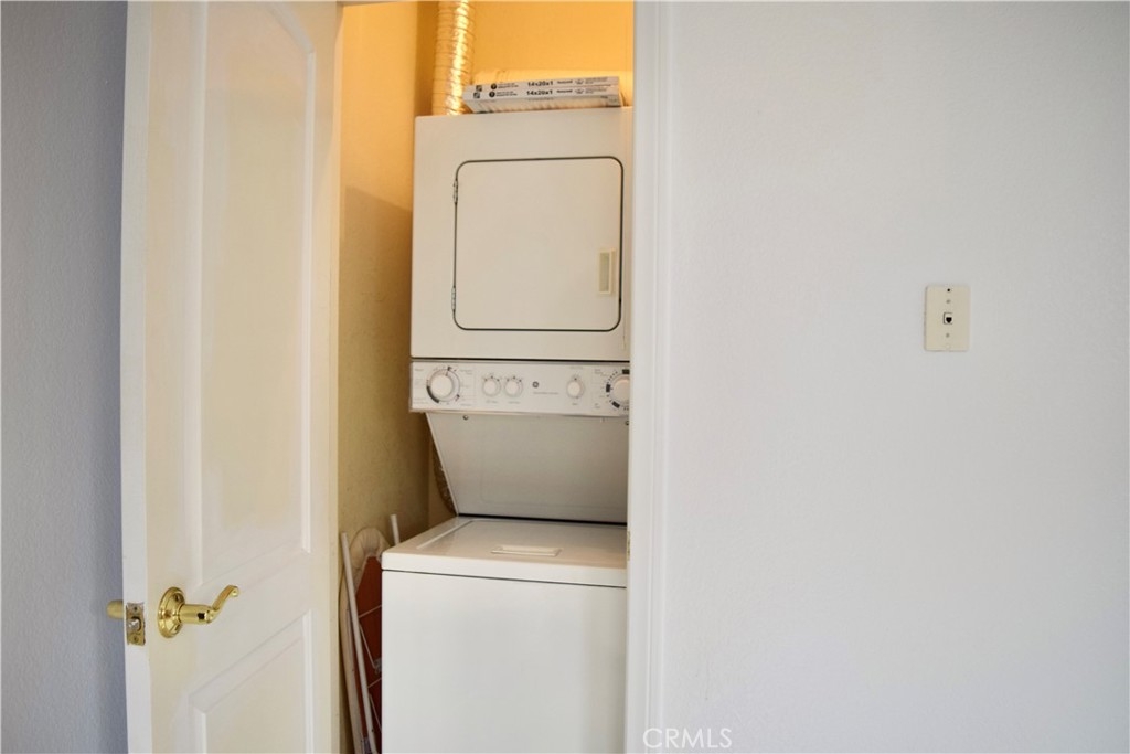 Our new townhome features two spacious bedrooms, one and a half baths. The first floor consist of a living room with gas fireplace and half bath. Its kitchen includes a gas stove, microwave, dishwasher, and refrigerator. It has granite countertops and a laundry closet with stackable washer and dryer. A dining area leads out to a spacious patio. Both bedrooms are located on the second floor along with a full bath. The master bedroom has two closets and a balcony overlooking the complex courtyard. Other amenities include central heating and air conditioning, laminate flooring throughout, and two subterranean parking spaces with a storage cabinet.