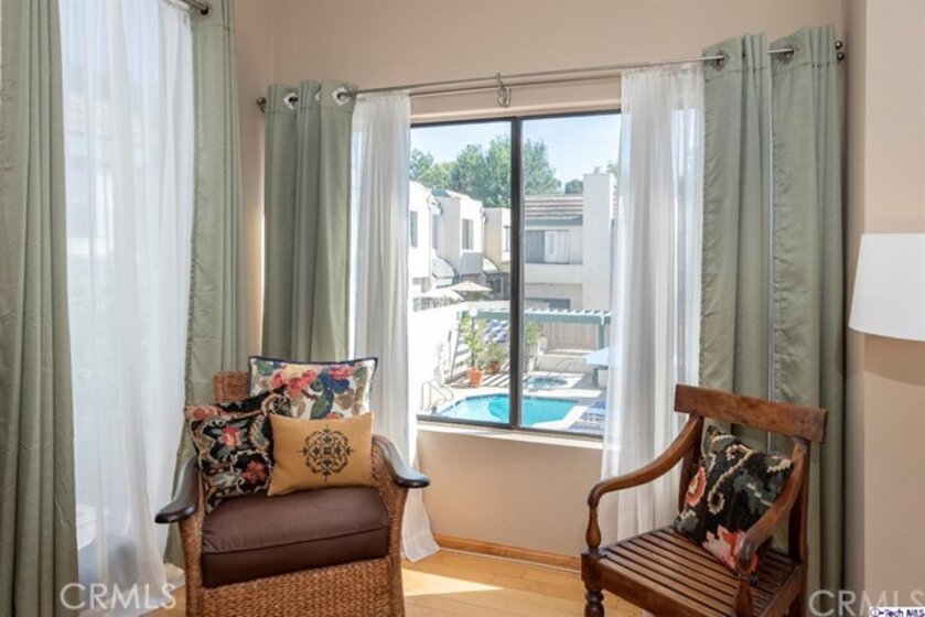 Just what you have been longing for. This desirable and light filled townhome offers an ideal location, great interior size and loads of upgrades. Move in and immediately enjoy living in this attractive well laid out home. Built in 1980, this 28 unit building offers a nice outdoor space including a pool, spa plus a patio area. The home has many special features including over 1500 square feet on two levels, 2 bedroom suites with baths, an upstairs laundry and a living area that is ideal for today's lifestyle with a spacious living room, separate den, and a formal dining area open to the impressive kitchen. The unique windows in the dining area are a striking feature. Plus built-in china cabinetry and it opens to the ideal kitchen that you will love cooking in. With wood floors and a brick fireplace as the focal point, the spacious living room is a place to entertain. Hang out in the den and relax. There is a guest bath downstairs and two full baths upstairs. The master suite is very spacious with vaulted ceilings and a dramatic bathroom with a tub and shower enclosure. The second suite has a bath with a tub and shower. A conveniently located laundry room upstairs makes doing laundry easy. Enjoy your private patio where you can garden or relax.
