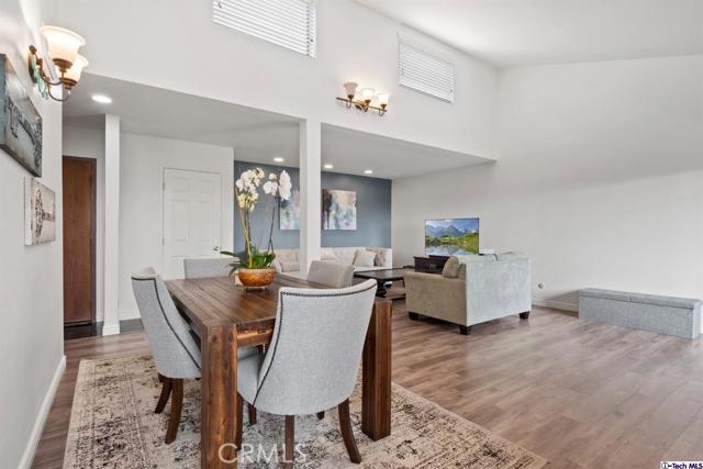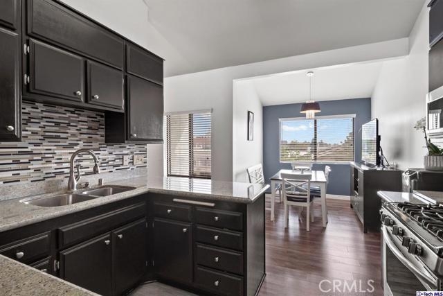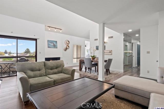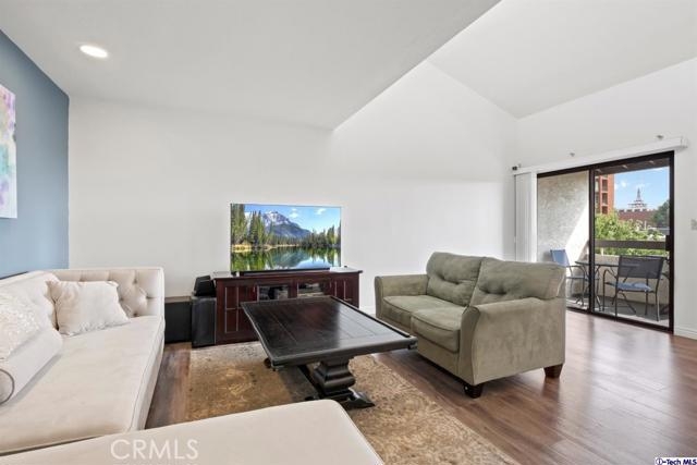 Stunning 2BD/2BA condo in prime Glendale that has been meticulously remodeled. The double door entry opens up to a large, open floor plan that is perfect for entertaining. The Living, Dining, and Bedrooms have recently installed wood laminate floors, high vaulted ceilings, and amazing natural light. A sliding glass door leads out to a balcony with amazing views of the Americana and Glendale Galleria on one side, and Griffith Park on the other. The updated gourmet kitchen has oak cabinets, granite countertops, and newer stainless steel appliances. You can spend time gathered around the large peninsula or relax in the convenient breakfast nook. Guest bathroom features newly installed tile floors, an updated vanity, and quartz countertop. In unit laundry area with linen shelves and storage space. The over sized Master bedroom includes a walk-in closet, large en-suite bathroom with a stand up shower and tub with glass tile inlays. Secure 20-unit complex which includes a gym with new equipment and recreation room. Walking distance to the Americana and the revitalized Glendale city center. Don't miss out on this exquisite property!