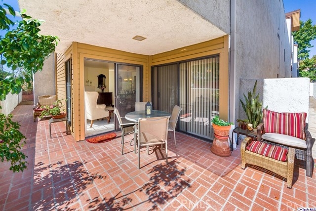 Desirable Charming Condo in Glendale. This is a well designed 24 unit complex that has been beautifully maintained by the owner of 34 years. It is on the first floor 3 bedrooms, 2 bath, 1321 Sq ft.condo. It offers Central Heating and AC, dining room, cozy fireplace in living room that has a sliding door that opens up to a large private wrap around patio/balcony, granite counter tops in kitchen and both bathrooms, new carpet, large main bedroom with sliding door to the patio, en-suite bathroom with double vanity. Linen closet, inside laundry unit with cabinets includes washer and dryer. Additional two storage closets one attached to the unit, plus a storage cabinet in garage. Complete with two parking spots in gated subterranean garage, close and convenient to the complex elevator. Gated community, security cameras, well taken care of manicured grounds, trash chute, and security cameras. Located near the Americana at Brand, shopping, restaurants and freeways.