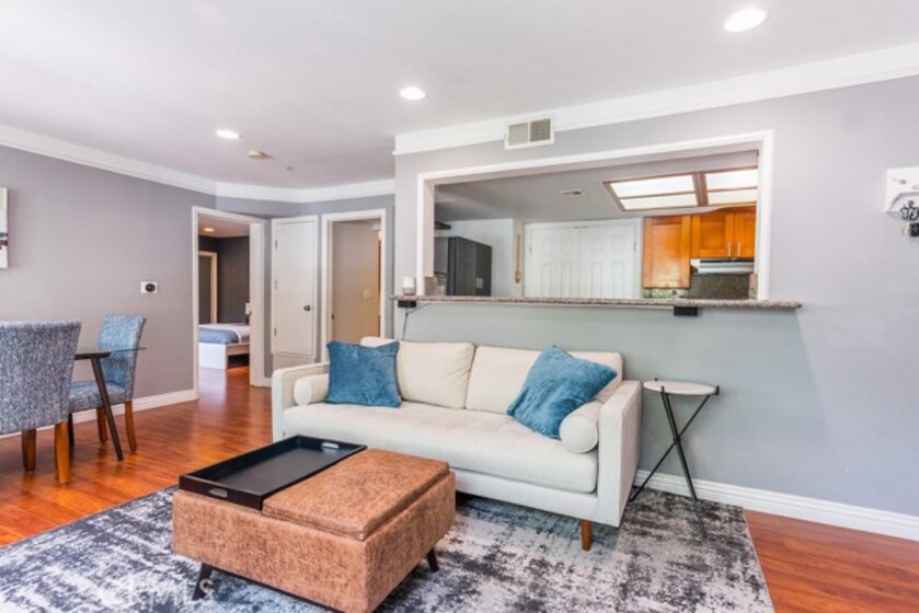 Just one minute from The Americana at Brand, this beautifully updated, light-filled one-bedroom end unit places you steps away from world-class shopping, dining, and entertainment while still enjoying the privacy and comfort of your own retreat. This home features two rare side-by-side garage parking spaces, in-unit laundry with a full-size washer and dryer, an upgraded kitchen with a complete suite of appliances and generous counter space, and a king-size bedroom with abundant closet storage. Windows on multiple sides fill the home with natural light, and recent updates include the HVAC system and hot water heater. With its prime location, thoughtful upgrades, and the rare convenience of two-car garage parking, this home is a private escape in the heart of Glendale’s most vibrant neighborhood one you’ll want to see before it’s gone.