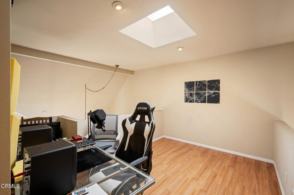 EXCITING NEWS: THIS UNIT HAS BEEN COMPLETELY FRESHLY PAINTED AND THE BUILDING HAS A NEW ROOF!!!!!Bright condo in Glendale with 2 bedrooms, 2.5 bathrooms, and a private & spacious loft with a skylight that can be used as a den, office, or even a 3rd bedroom. The primary bedroom features a walk-in closet, bathroom and a private balcony, and the loft features a skylight and is separate from the other bedrooms. It is a townhouse-style condo with a big kitchen that has plenty of storage. It's a corner, front facing unit only sharing walls with one neighbor and with the bonus of being a top unit with two balconies, allowing you to step outside and enjoy the views, especially at night. This unit also includes a fireplace, vaulted ceilings, and hardwood floors in the living room, which makes the space feel more open and suitable for entertaining. The condo also offers a convenient laundry room (washer/dryer included) with storage shelves.The property has central air & heat, recessed lighting, an elevator from the parking lot to the top floor, secure gated entry and 2 parking spaces with large cabinets for storage. HOA is affordable and includes water ($400 monthly). LOCATION, LOCATION, LOCATION! This complex is close to wonderful shops and restaurants, including the Americana, and it has good proximity to downtown L.A., Pasadena, Eagle Rock, and Highland Park, so you'll have an easy commute if you work in these areas. The property is centrally located to provide your guests with great options for entertaining. A true Glendale gem