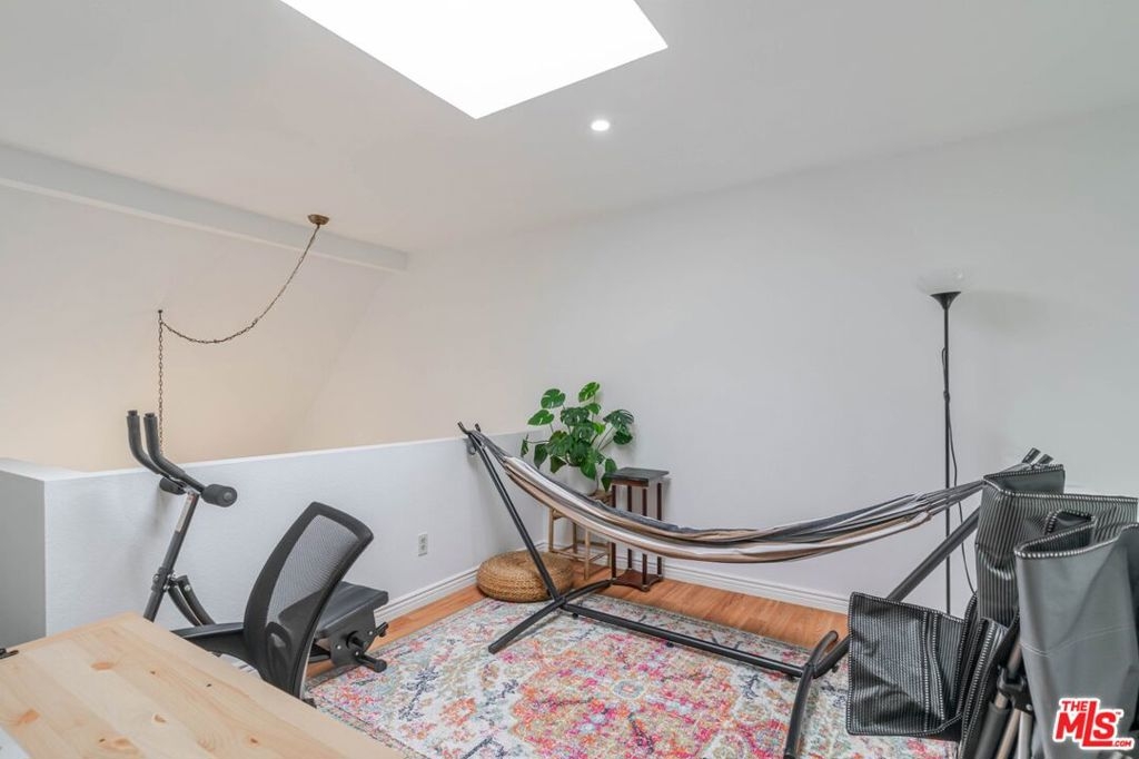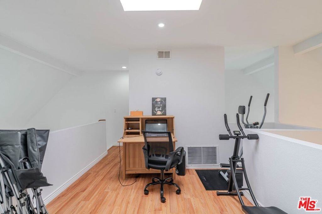 This beautifully updated condo has been freshly painted throughout, and the building recently received a brand-new roof. Located in Glendale, this bright and spacious townhouse-style residence offers 2 bedrooms, 2.5 bathrooms, plus a private and versatile loft with a skylight that can serve as a den, home office, or even a third bedroom. The primary suite features a walk-in closet, an en-suite bathroom, and its own private balcony, while the loft area is set apart from the bedrooms and filled with natural light. The home is a front-facing corner unit that shares only one common wall and enjoys the added privacy of being on the top floor. Two balconies provide inviting outdoor space and pleasant views, especially in the evening. Inside, the living room showcases vaulted ceilings, hardwood floors, and a cozy fireplace, creating an open and welcoming space ideal for relaxing or entertaining. The spacious kitchen offers abundant cabinet storage, and a convenient laundry room with washer, dryer, and storage shelving is included. Additional features include central air and heat, recessed lighting, elevator access from the gated parking area to the top floor, and two parking spaces with large storage cabinets. The HOA includes water .Ideally located, this home is just minutes from Glendale's popular shops and restaurants, including The Americana at Brand, with easy access to Los Angeles, Pasadena, Eagle Rock, and Highland Park. With its central location and inviting layout, this condo offers a wonderful blend of comfort, convenience, and style, truly a Glendale gem.