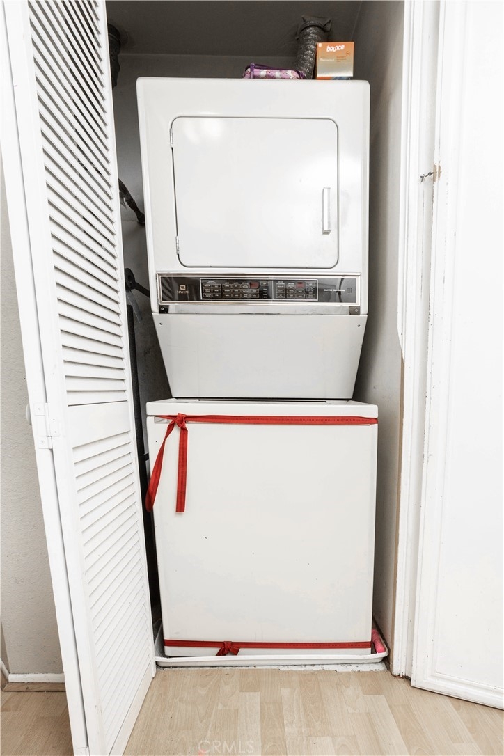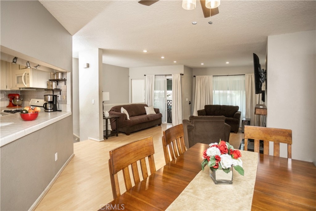 Wonderful opportunity to live in a condo in desirable area. This unit is a top floor, corner unit with no one above. Large entry door with stairs leading to a single floor condominium. This unit is light and bright with laminate floors and very open with spacious living room to formal dining area and kitchen. The current owner has updated all of the windows to dual pane in 2021, along with newer 3 ton HVAC system in 2021. Also added were ceiling fans in both bedrooms and dining room. There is a patio off of the living room with a view of the trees, which is relaxing. The kitchen is complete with all appliances included, such as stackable washer and dryer in closet, refrigerator and stove. You will be amazed at the oversized two car private garage with storage. The garage is in a convenient location at the end and near the stairs leading to the unit. There are large patio areas for your enjoyment to relax, eat or play. Seldom do units in this Maple Villa become available. The current HOA fees are $312 a month with a 5% increase due in January, 2024. There are also ample reserves in the HOA. Located on a tree lined street, with plenty of parking for guest, and also close proximity to Glendale Galleria, Americana at Brand, shopping, and more. Don't miss this seeing this great unit and making it your home!