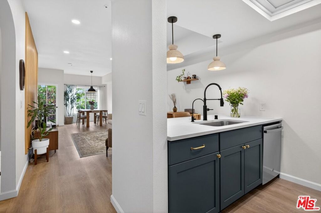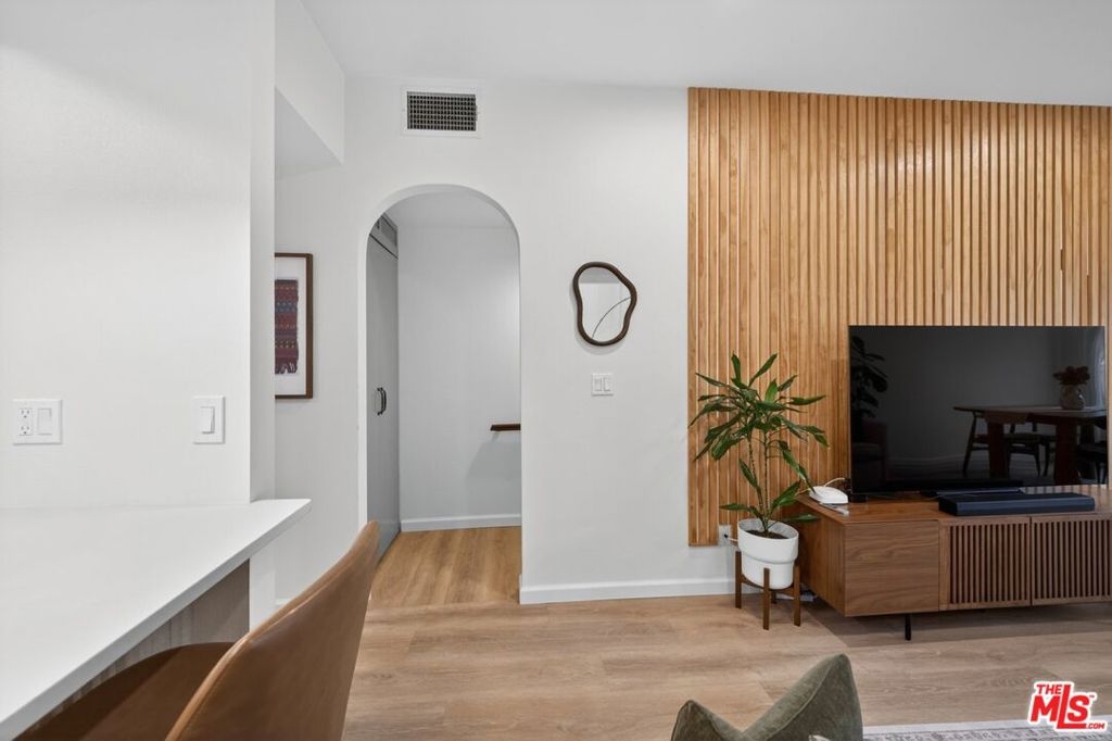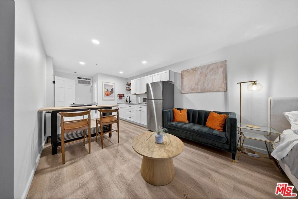 Welcome to 147 Acacia Ave, Unit 118A bright and stylish tri-level condo in the heart of Glendale, showcasing a clean neutral palette with subtle Dutch Bohemian influences that create a modern yet inviting atmosphere. A standout feature of this residence is the first-floor studio suite complete with a private entrance, kitchenette, and full bathroom. This flexible space is ideal for guests, a private office, multi-generational living, or potential supplemental income. The main living level features an open-concept layout with the kitchen as the focal point. Enjoy ample cabinetry, elegant Rejuvenation brass finishes, and updated appliances including an LG French Door refrigerator, GE range, GE dishwasher, and a discreetly tucked-away stackable GE washer and dryer. The living and dining areas flow seamlessly and open to a private balcony perfect for relaxing or entertaining. Upstairs, the primary suite offers generous closet space and a fully remodeled en-suite bathroom with spa-inspired finishes. The secondary bedroom is thoughtfully positioned for privacy and is complemented by another beautifully updated bathroom. Extensive upgrades include new plumbing throughout, enhanced electrical, luxury vinyl plank flooring, new windows, recessed LED lighting, ceiling fans, and a new AC/heating combination unit. The unit includes two side-by-side assigned parking spaces, guest parking, and a storage area within the gated garage. The secured community features security cameras along with resort-style amenities including a pool and spa. Conveniently located just minutes from The Americana at Brand, Atwater Village, Whole Foods Market, Starbucks, and Hollywood Burbank Airport, this home offers comfort, versatility, and an exceptional Glendale location.