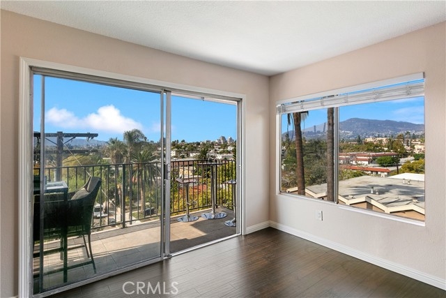 A beautiful top-floor penthouse-style condo with only one common wall and with city and mountain views. Located in prime Glendale on a cul-de-sac street. This beautifully designed 2-bedroom, 2-bathroom condo offers the perfect blend of comfort, style, and everyday convenience. Step inside to discover bright and inviting living spaces, featuring bamboo flooring, elegant white baseboards, and modern lighting that create a warm and refined atmosphere. The open-concept kitchen is both functional and welcoming, featuring stone countertops, dark wood cabinetry, ample storage, and a breakfast bar that seamlessly flows into the living and dining areas, ideal for entertaining or enjoying quiet mornings at home. A highlight of this home is the private balcony, a peaceful retreat where you can unwind and take in panoramic city and sunset views. A perfect spot to relax and recharge. Both bedrooms are filled with natural light and offer generous closet space, complemented by continued bamboo flooring, which balances comfort with thoughtful design. Interior features include: an updated electrical panel, an updated AC controller, a newer HVAC system, and water heater. The property was remodeled about 5 years ago. Enjoy the best of community living with resort-style amenities, including a sparkling pool, Spa, a serene courtyard, and an on-site gym. Practical perks include two dedicated parking spaces with additional storage, as well as ample guest parking. In a city where convenience and charm are hard to come by, this Glendale gem delivers it all with stunning views that remind you to slow down and savor the moment. Don’t miss this opportunity - schedule your private showing today!