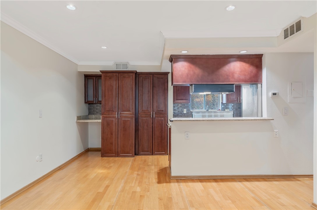 Tucked away in the heart of Glendale, this bright and thoughtfully designed 1-bedroom, 1-bathroom condo at 1517 E. Garfield Avenue offers both charm and practicality. The main living areas feature hardwood floors, detailed crown molding, and recessed lighting, creating an atmosphere that feels both polished and inviting. The kitchen is more than just a place to cook—it’s a space that encourages connection, with granite countertops, rich cherry wood cabinetry, ample storage, and a breakfast bar that seamlessly integrates into the living space. But what truly sets this home apart is the private balcony, a quiet escape where the city unfolds before you. And as the day winds down, the sunset views from this perch are nothing short of breathtaking—deep oranges and soft purples stretching across the horizon. The bedroom, bathed in natural light, features laminate wood flooring and generous closet space, balancing comfort and functionality. Beyond the unit itself, the community offers resort-style amenities, including a sparkling pool, spa, and a peaceful courtyard designed for relaxation. Practicality is also top of mind, with one dedicated parking space and extra storage, plenty of guest parking, and access to an on-site gym. In a city where space and convenience are prized, this condo delivers something even more valuable—a home with a view that reminds you to slow down, just for a moment, and take it all in. Don’t let this opportunity pass you by—schedule a viewing today and see for yourself why this home is the perfect blend of comfort, style, and stunning sunsets.