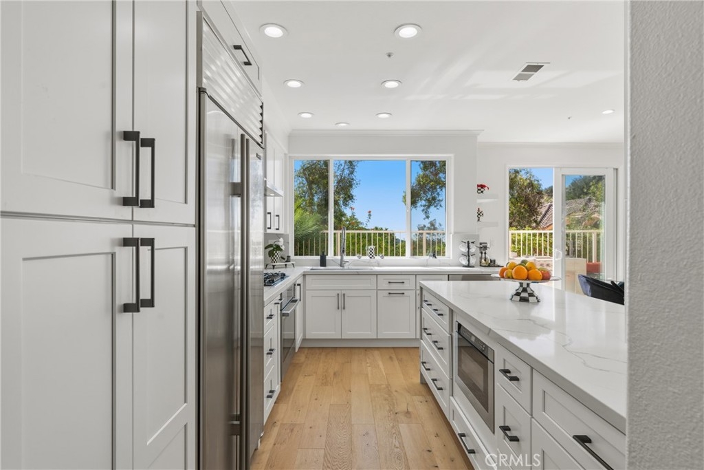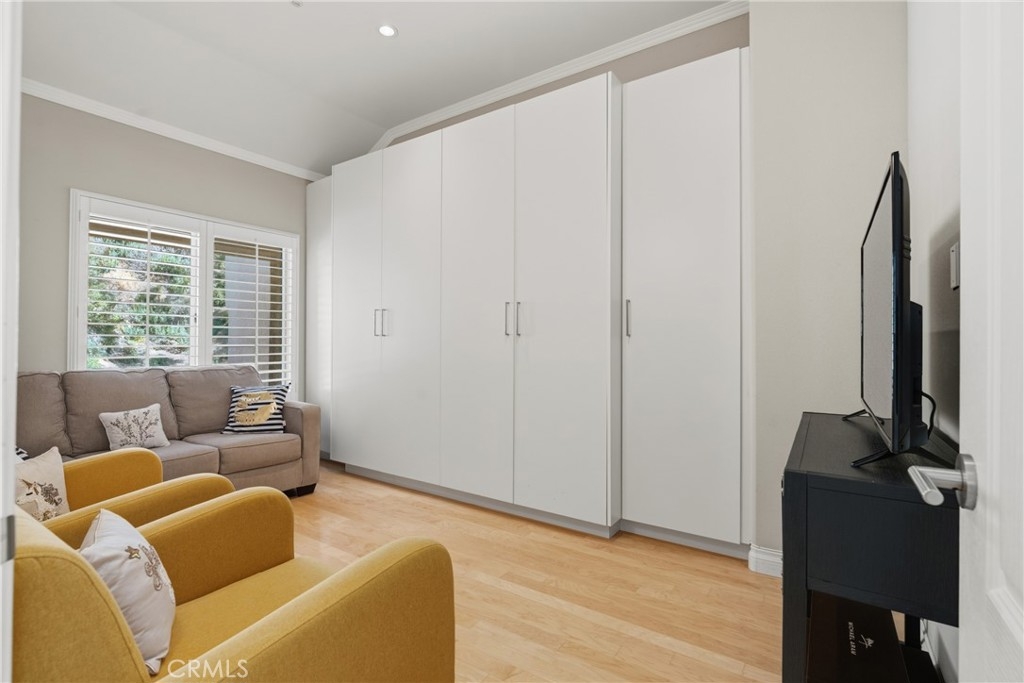 Gorgeous townhouse nestled in one of Glendale’s most sought-after neighborhoods. This beautifully remodeled 3-bedroom, 2.5 bathroom home is tucked away on a quiet cul-de-sac, offering serene views of lush greenery and a true sense of privacy. Step inside to an open, light-filled floor plan featuring soaring double-height ceilings, recessed lighting, rich wood flooring, plantation shutters, and premium window treatments throughout. The remodeled kitchen is a chef’s delight, complete with a center island, quartz countertops, and a spacious walk-in pantry, seamlessly connecting to the dining area. The inviting living room boasts a cozy fireplace and opens effortlessly to the outdoors through elegant French doors and a sliding glass door, leading to both back and side yards—perfect for relaxing or entertaining. Upstairs, the primary suite serves as a private retreat, featuring a dual-sink vanity, separate soaking tub and shower, and ample closet space. Additional highlights include a convenient 2-car attached garage Association features include a pool, spa, clubhouse, picnic area, sauna, and tennis courts