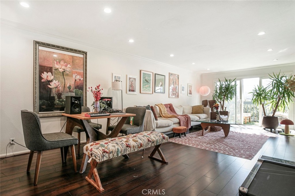 Location, Location, Location! Welcome to the Verdugo Penthouse Condominiums in the heart of Glendale! This stunning top-floor unit offers breathtaking panoramic views and a serene modern design. Step inside to find rich dark-oak like colored flooring, recessed lighting, and an open layout that blends comfort and style. The inviting living area flows seamlessly to a private balcony—perfect for outdoor furniture, morning coffee, or relaxing sunsets. The kitchen features sleek granite countertops, a convenient breakfast bar, and stainless steel appliances. Bathrooms are beautifully finished with granite surfaces, and an in-unit laundry area adds everyday convenience. Enjoy resort-style living with access to the community’s large sparkling pool. Don’t miss your chance to own this exceptional penthouse condo in one of Glendale’s most desirable locations!