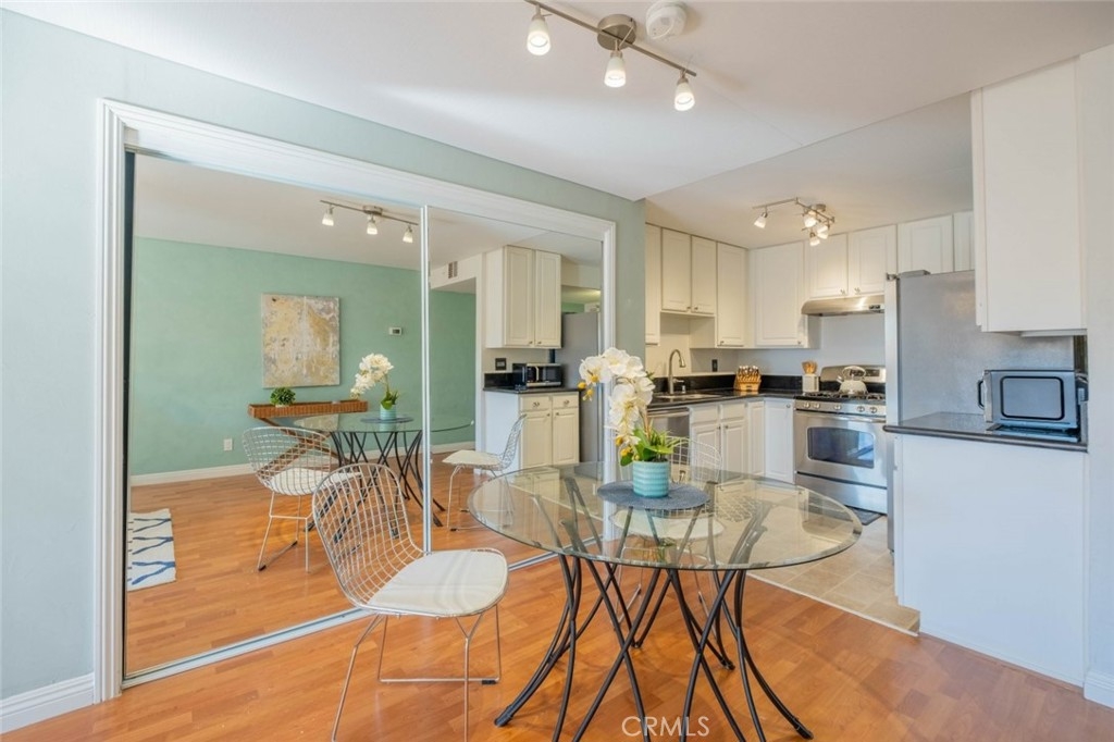 Nestled in a prime Glendale locale, this meticulously remodeled condo awaits! Boasting a singular unit configuration with 1 bathroom and 529 square feet of thoughtfully designed living space, this residence features an inviting open floor plan complete with central AC and heating. Ample storage solutions and a private balcony off the living room add to the appeal. You can expect to find laminate flooring in the living and bedroom area, with linoleum flooring in the kitchen and tile in the bathroom. The designated bedroom area, situated opposite the living space, provides an additional dimension to the layout. The dining area is equipped with a spacious mirrored closet and a stylish ceiling fan/light fixture. Culinary enthusiasts will appreciate the well-appointed kitchen, featuring stainless steel appliances, granite countertops, and pristine white cabinets. The remodeled bathroom is a modern oasis, featuring a stand-up shower, a sleek vanity with storage space, and a tasteful tiled backsplash. Community laundry rooms are located in the garage and 3rd floor of the building making it super convenient. Security is assured in this controlled-access building, which is impeccably maintained. Elevator access enhances convenience, and residents can enjoy shared amenities such as a community open patio space with seating, as well as a refreshing pool and spa. Benefiting from a superb location, this residence is in proximity to markets, dining options, and more, making it an ideal home in the heart of Glendale.