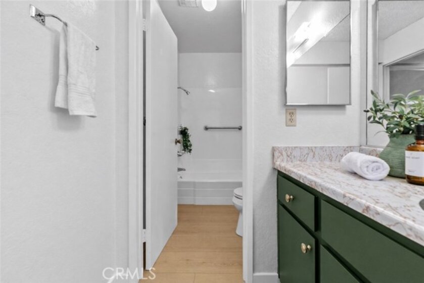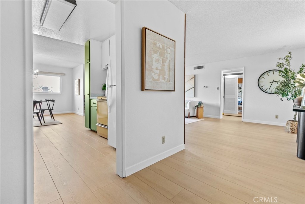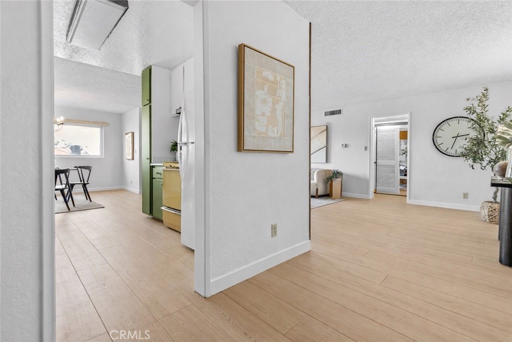 Step into one of the largest one-bedroom condos in the vibrant Verdugo Viejo/Rossmoyne neighborhoods of Glendale! This impressive unit boasts a generously sized kitchen that seamlessly transitions into a spacious dining area, perfect for hosting sizable dinner gatherings. The dining area flows into a large living room flooded with natural light, offering ample space for entertainment, complete with a cozy gas fireplace and a private balcony accessible through glass sliding doors. The bedroom is notably spacious, featuring an expansive walk-in closet that provides abundant storage space. Additionally, a sizable sliding door closet in the hallway between the bedroom and the bathroom offers extra convenience. The well-appointed bathroom offers ample countertop space on its vanity. Despite being a one-bedroom unit, storage is abundant with three closets within the condo, along with a storage cabinet situated above the assigned parking space within the secure gated community garage. Owners are allowed to create a laundry space within their units so long as they use approved vendors! The complex offers a range of amenities including security cameras, a pool, spa, gym, community laundry facilities, and an outdoor barbecue area, catering to a comfortable and vibrant lifestyle.