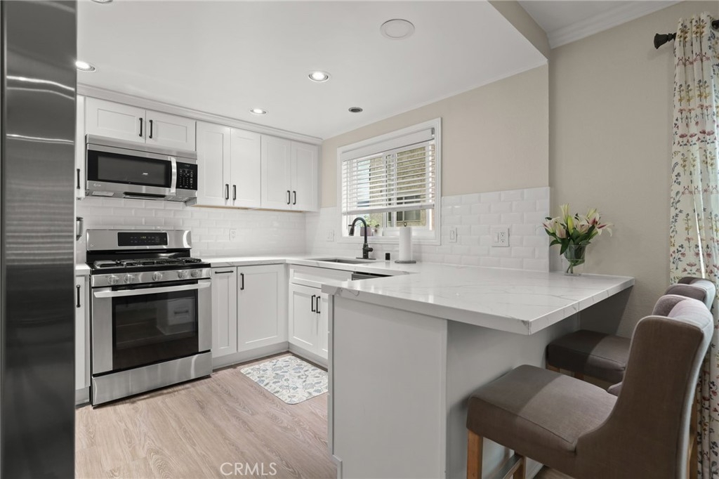 Located just minutes from the vibrant heart of Glendale, this beautiful 3-bedroom, 2.75-bathroom townhouse combines the spacious feel of a single-family home with the low-maintenance convenience of a condo. Spanning two levels, this bright and inviting home features vinyl laminate flooring, recessed lighting, and stylish contemporary light fixtures throughout. The main level floor plan is accessed via a foyer that opens to the living room. Adjacent is an open kitchen - dining room, perfect for both cooking and entertaining. The updated chef's kitchen features sleek quartz countertops, a chic tile backsplash, abundant cabinet space, a convenient breakfast bar, and stainless steel appliances including a refrigerator, gas stove/oven, and built-in microwave. The primary suite has its own en suite bathroom. The well-appointed bathrooms feature stylish tiling, modern fixtures, and vanities with plenty of storage. The unit includes two covered parking spaces with extra storage. Perfectly situated, this townhouse is an ideal base for exploring everything Glendale has to offer. Just a short walk, bike ride, or quick drive brings you to the abundant dining, shopping, and entertainment options at the Glendale Galleria, The Americana at Brand, and the diverse restaurants along Brand Boulevard. Commuting is easy with convenient access to major freeways and public transportation. Embrace the best of Glendale living in this immaculate, modern home. Some of the upgrades since 2020; flooring, HVAC, electrical, appliances