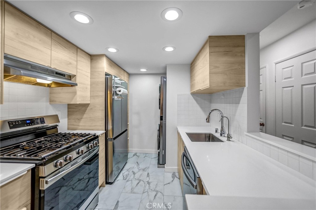 Newly Renovated Top-Floor 2 Bed / 2 Bath Discover comfort and urban convenience at Glendale Oaks. This newly renovated top-floor corner unit spans 1,012 sq ft. Highlights: Newly Renovated Interiors: Recessed LED lighting, and freshly painted walls create a modern, move-in-ready aesthetic. Brand New Kitchen: Functional cabinetry with soft-close hinges, Newly installed easy-to-clean quartz countertops, New sink and faucet with 6-stage water filtration system for safe drinking water, along with brand-new fridge, dishwasher, stove and oven included within the home sale to make your day to day cooking and dining a joy. Stylish Baths: New vanities and updated lighting in both baths, with new glass shower enclosures and new tiling installed for spa-like quality to your everyday routines. Functional & Relaxing Spaces Master Suite with two-in-one option: Includes a large master bedroom with walk-in closet with plenty of storage space — floor plan perfect for either the enjoyment of extra spaciousness or the additional option of adding a dresser and office table to create a multifunctional space for a two-in-one master bedroom- office combo. Laundry Convenience: New in-unit washer and dryer included within the home sale. Efficient Comfort: HVAC system with smart-thermostat control ensuring energy efficiency and year-round comfort. Upgraded, city-inspected Electrical Panel adds further peace of mind. Glendale Oaks presents exceptional amenities: A full-sized swimming pool with spa, tennis court, and secure, gated entry for hosting family and friends. Two (2) Designated parking spots. With garage storage. Convenient Location: Walkable access to the luxurious dining and shopping experience at Glendale Galleria and The Americana at Brand within minutes. Distance from 5 and 134 freeway within a few minutes drive.