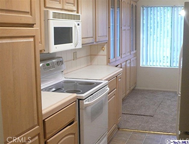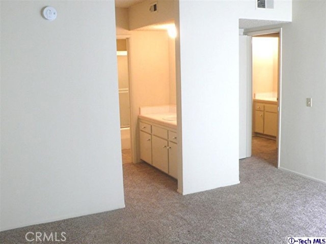 This spacious two bedroom, two bath condo is located near Glendale's central business area and close to numerous shopping, entertainment, and eating establishments. It is also near public transportation. The unit has a large living room with a balcony, an eating area, and beautiful kitchen with lots of lovely wood cabinets. The master bedroom has a full bathroom and a huge walk-in closet. There are carpets in the living room, hallways, and bedrooms. The kitchen and bathrooms have vinyl floors. There is central heat and air and two side-by-side parking spaces in the subterranean garage. The building has three floors and an elevator.